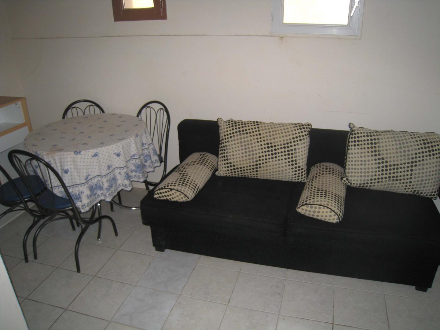 - d'un espace salon avec un canapé clic-clac,